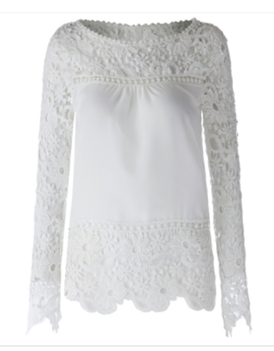 stylish Round Neck Longsleeve Spiced Hollow Aut Women's Blouse